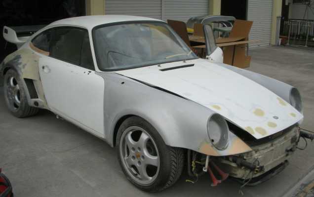 作業内容は、ポルシェ乗りなら誰もがあこがれるターボフェンダーに交換です。